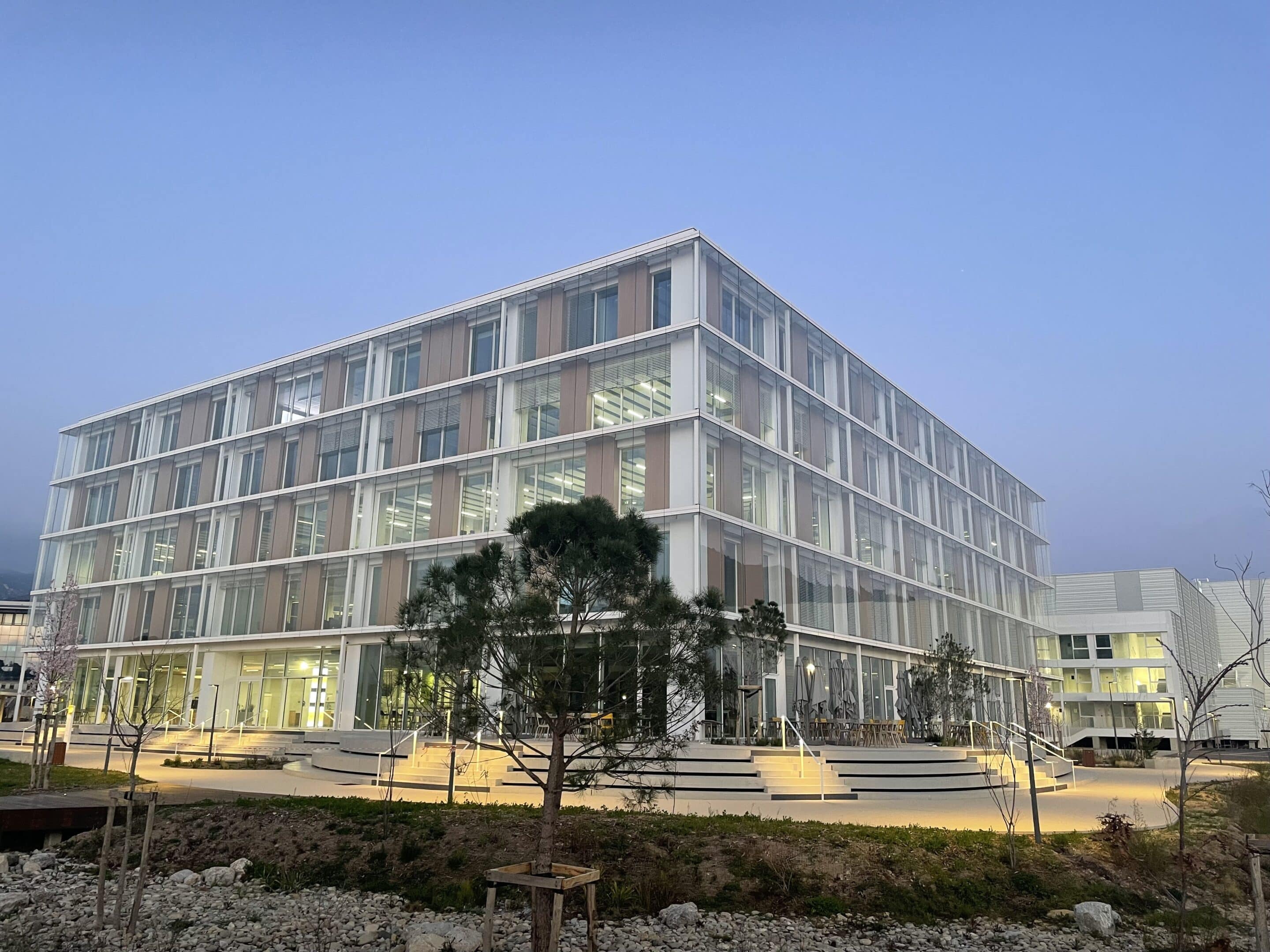 La visite a été l’occasion de découvrir des processus et des technologies impressionnants, mais aussi de découvrir un campus conçu pour être respectueux de l’environnement et qui intègre des zones de production en salle blanche, une plateforme logistique, des laboratoires de R&D, des bureaux modernes, un auditorium, un show-room avec réalité virtuelle, un restaurant et des espaces paysagers.